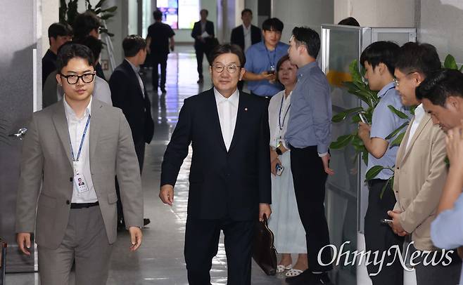 | ▲ 김건희 여사 관련 의혹을 수사하는 민중기 특별검사팀이 통일교의 정치권 로비 의혹과 관련해 권성동 국민의힘 의원 사무실과 자택을 압수수색에 나선 가운데 18일 오후 서울 여의도 국회 의원회관에서 권 의원이 입장을 밝히기 위해 자신의 사무실로 향하고 있다. |