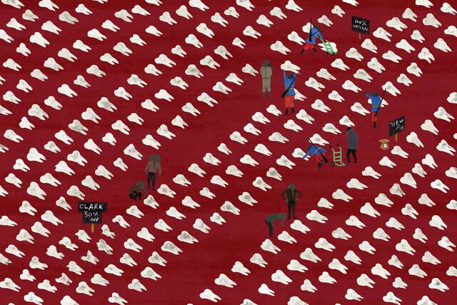코끼리들은 아이의 이빨을 뽑아 흡사 시장에서 물건을 파는 듯이 거래한다. 시장이라는 장소는 본디 인간들이 필요한 물건을 사고파는 장소다. 누구도 그 물건이 생명을 잃은 존재의 일부라는 사실에 마음 아파하지 않는다. 모두가 즐겁게 사고파는 그 공간은 이상하게도 슬프고 무서운 분위기를 풍긴다. 이빨은 상품이 되었고, 죽음은 그저 배경이 되어버린다.