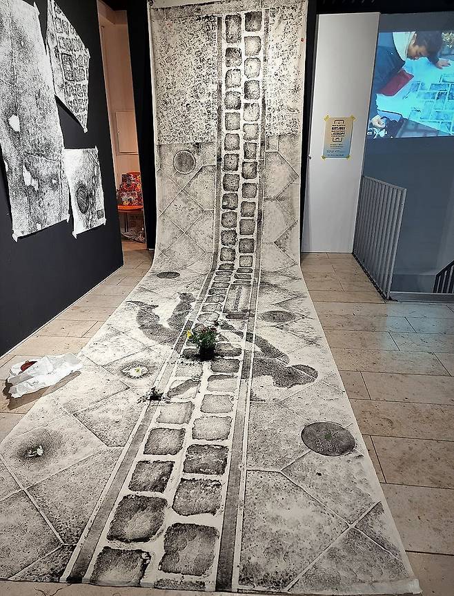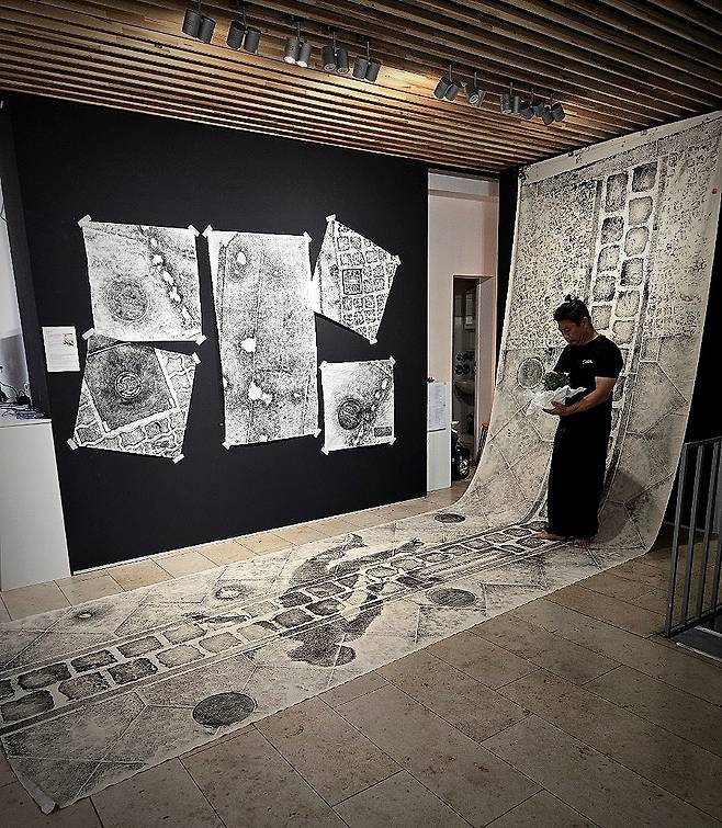 | ▲ 성백 작가의 탁본 작품 베를린 장벽 기념선과 그림자 |