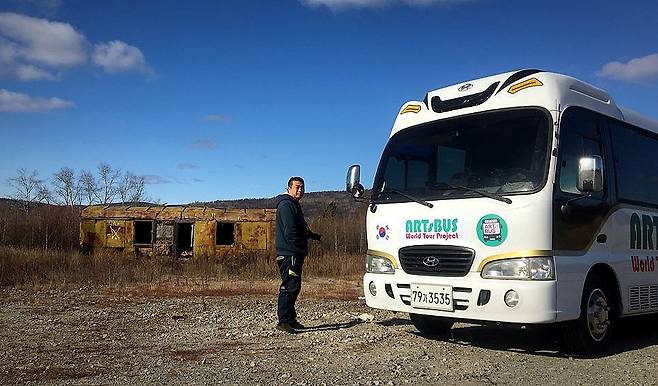 | ▲ 성백 작가와 ARTsBUS 2019년 ARTsBUS 월드 투어 프로젝트 중 러시아 어느 마을에서 |