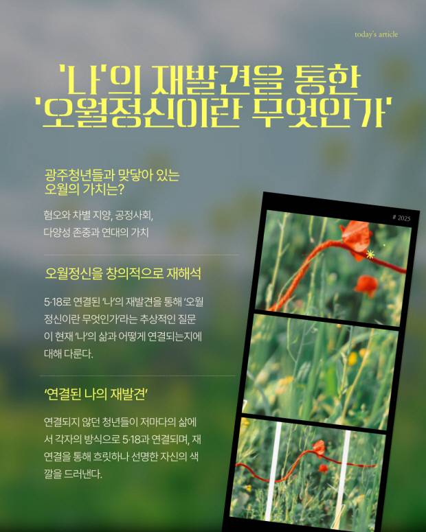 이들은 5·18이 혐오와 차별을 넘는 연대, 다양성, 공정이라는 청년들의 가치와도 맞닿아 있다고 말한다.