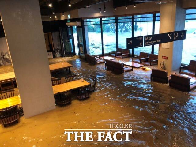 광주 17일 400mm 넘는 폭우 내려... 스타벅스 건물 1층 침수