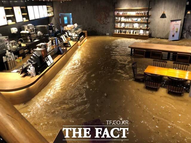 광주 17일 400mm 넘는 폭우 내려... 스타벅스 건물 1층 침수