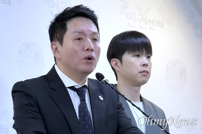| ▲ 군인권센터 임태훈 소장과 김형남 사무국장이 18일 오전 기자회견을 열어 육군 지상작전사령부 관련 복수의 제보 내용을 설명하고 있다. |
