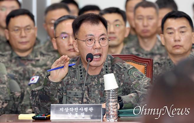 | ▲ 강호필 육군 지상작전사령관이 지난 1월 14일 오전 서울 여의도 국회에서 열린 내란국조특위 3차 회의에 출석해 발언하고 있다. |