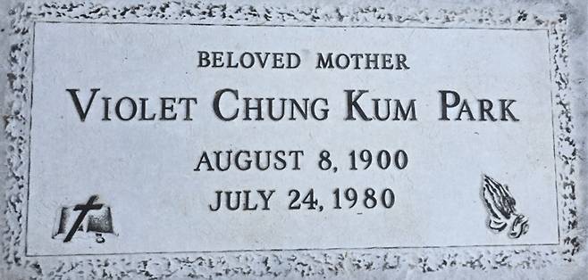 박정금 지사의 묘비에서는 생몰년(1900년 8월 8일~1980년 7월 24일)과 함께 하와이에서 사용한 이명(異名)인 "VIOLET"이 확인되었다.