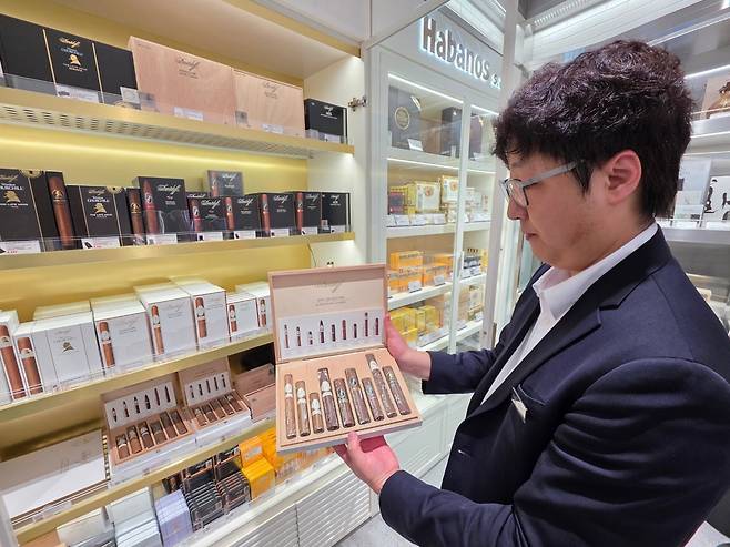 주류 코너는 고연산 위스키 등 레어 아이템 전시로 즐거움을 더하고, 담배 매장에는 하바노스, 다비도프 등이 시가존을 새롭게 구성했다. 중국 담배 라인업도 확대해 니치 마켓 수요를 공략하며 차별화된 선택지를 제공한다.