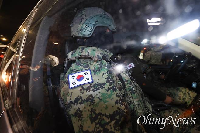 | ▲ 윤석열 당시 대통령이 지난 2024년 12월 3일 저녁 기습적으로 비상계엄을 선포했을 때, 국회 앞에 등장한 무장한 계엄군들. |