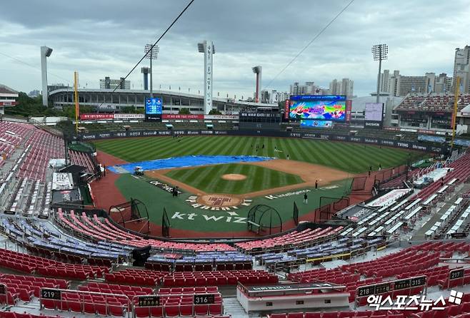 (엑스포츠뉴스 수원, 조은혜 기자) 비로 밀린 후반기 시작, 18일에는 제대로 경기가 개시될까. 위즈파크에 방수포가 걷혔다.