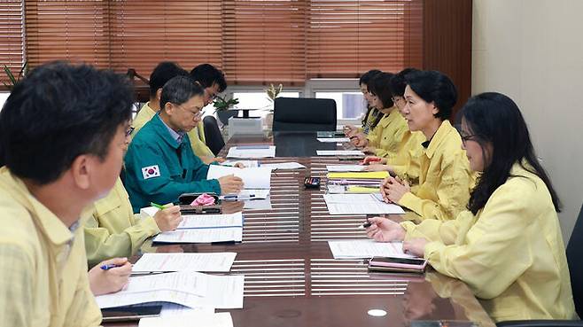 ▲ 집중호우 비상대책회의를 주재하는 최은옥 교육차관