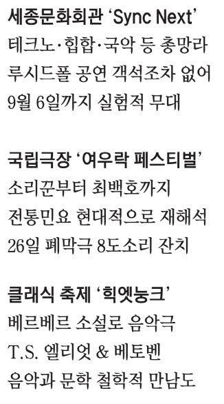 한편 클래식 분야에서는 다음달 22일부터 9월 5일까지 예술의전당 등 서울 일대에서 열리는 '제8회 힉엣눙크! 뮤직 페스티벌'이 기술과 음악, 문학과 클래식 음악 등 탈장르적 접점을 모색한다. 우리나라를 대표하는 앙상블 세종솔로이스츠가 기획하는 음악 축제다.