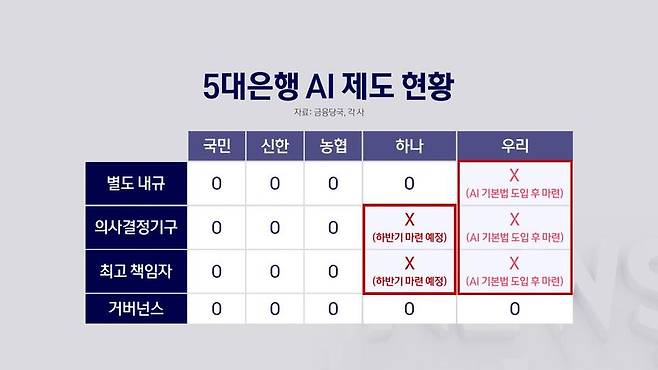 5대 시중은행 중 국민·신한·농협은행은 AI 활용을 위한 별도 내부 기준과 평가와 관리를 위한 조직이 구축돼 있었습니다.