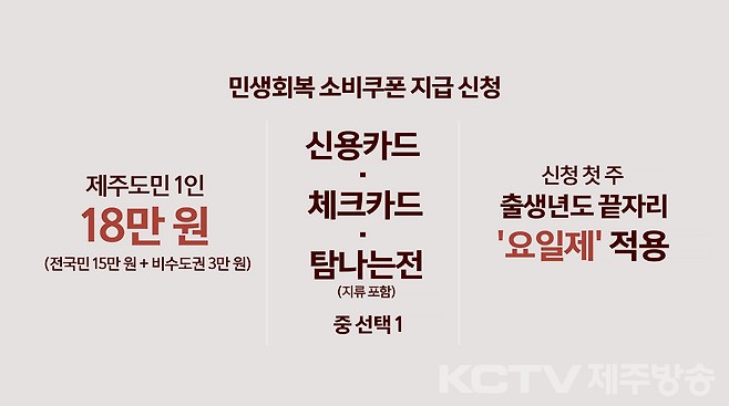 제주도민 1인당 기본 지급 금액은 비수도권 3만 원이 더해진 18만 원입니다.