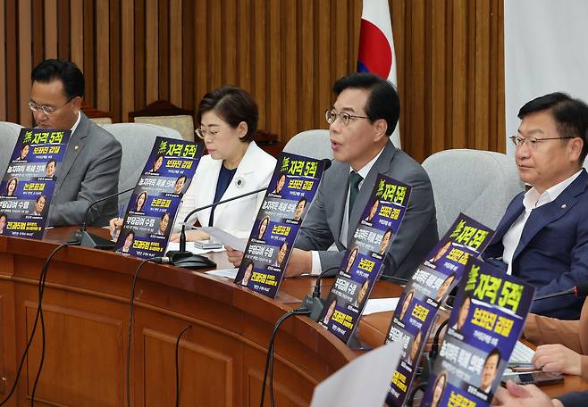 송언석 국민의힘 원내대표 "윤상현 의원(지난 8일 김건희 특검팀)과 임종득 의원(지난 11일 해병 특검팀)에 대한 압수수색에 이어 또다시 무차별적인 압수수색 영장을 지금 집행하겠다는 것입니다. 특검이 마치 민주당 직할 또는 이재명 정권 직할의 새로운 검찰을 운용하는 것으로 국민들께 비춰지고 있습니다"