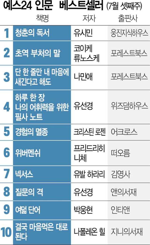 [베스트셀러] '나태주 딸' 나민애 교수 저서, 인문 3위 '껑충'