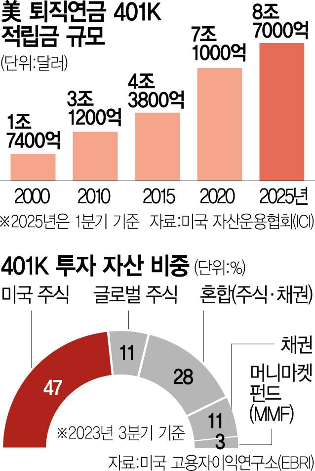 이번 조치는 401k 시장의 ‘보수적 운용’ 원칙에 변화를 예고하는 제도적 전환점으로 평가된다. 1981년 도입된 401k는 미국 직장인의 대표적인 은퇴 준비 수단으로 급여 일부를 세금 유예 혜택과 함께 주식과 채권에 투자할 수 있다. 안정적인 운용을 고려해 투자 대상은 주식과 채권 등으로 제한했다. 올해 1분기 기준 적립금이 무려 8조 7000억 달러(약 1경 2128조 원)에 달한다. 이 자금이 가상자산 시장으로 흘러갈 경우 성장을 가속화할 것이라는 분석이 나온다.