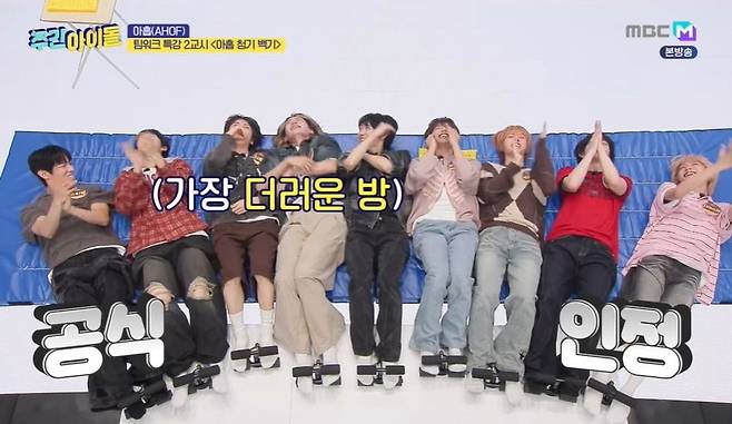 18일 방송된 MBC M '주간 아이돌'에서는 MC몬스타엑스 민혁, 크래비티 형준과 게스트 아홉(AHOF)이 출연했다.