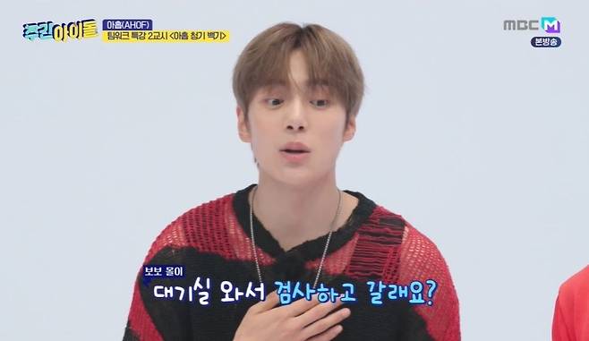 몬스타엑스 민혁, 아홉 장슈아이보 대기실로 호출 "검사하고 가" ('주간아이돌')