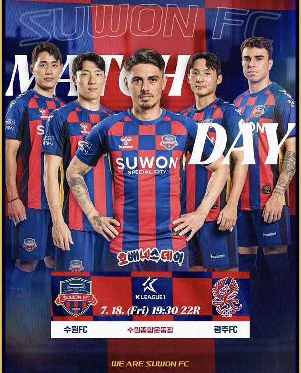 수원FC는 18일 오후 7시 30분 수원종합운동장에서 열리는 '하나은행 K리그1 2025' 22라운드에서 광주FC를 상대한다.