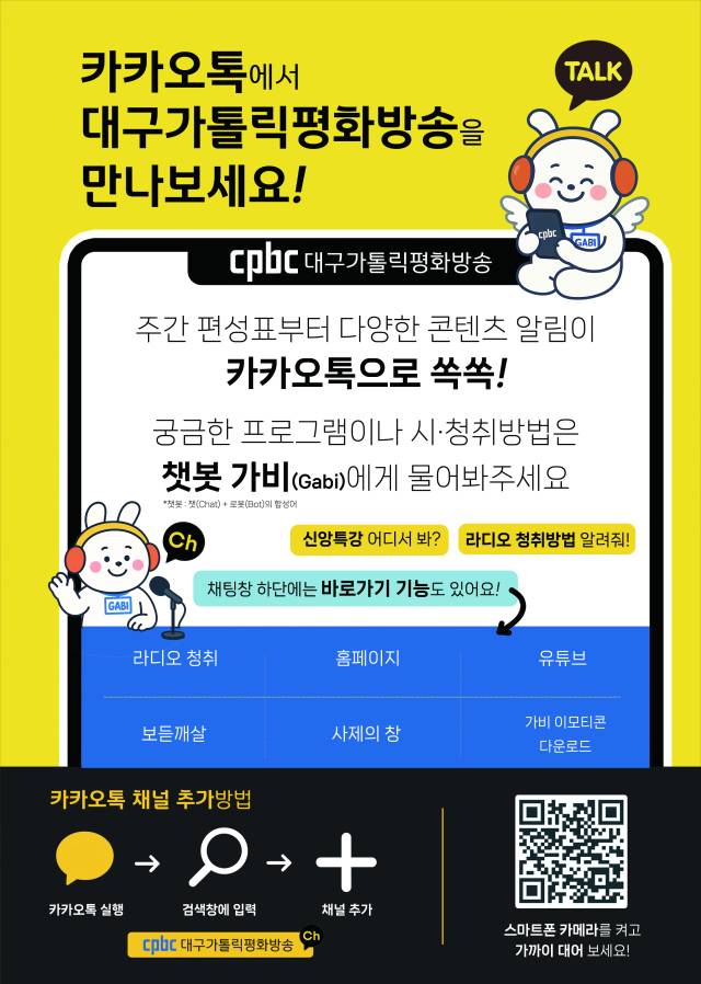 cpbc 대구가톨릭평화방송, 카카오톡 채널 개설·챗봇 가비(Gabi) 배포