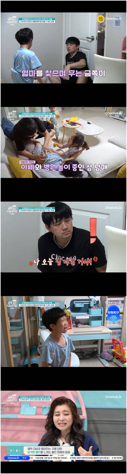 엄마가 잠시 외출한다고 말하자마자 아빠랑 잘 놀던 금쪽이는 화를 펄펄 내면서 아빠더러 "아빠 죽어", "집 부술 거야" 등 분노하며 눈물을 흘렸기 때문이었다.