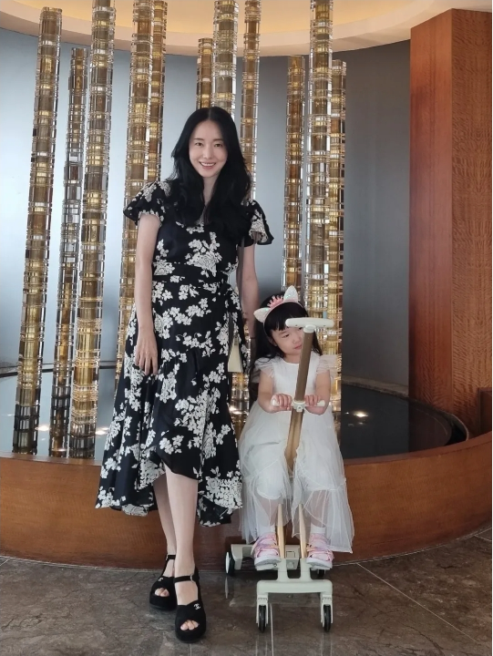 가수 겸 배우 이정현이 딸 서아와 함께한 출장길에서 포착된 사랑스러운 엄마 미소를 선보였다.
