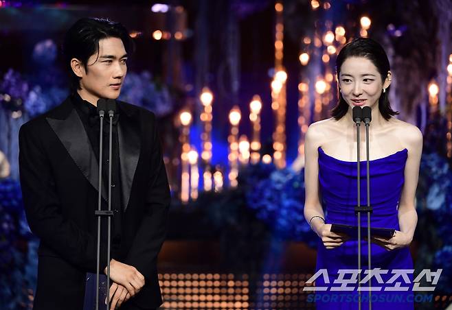 제4회 청룡시리즈어워즈(Blue dragon Series Awards)가 18일 인천 파라다이스시티에서 열렸다. 시상자로 나온 엄태구, 박지현. 인천= 허상욱 기자 wook@sportschosun.com/2025.07.18/