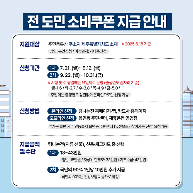 제주도는 도민들의 소비쿠폰 신청을 지원하기 위해 민생지원 전담대응팀(064-710-2510)을 운영한다.