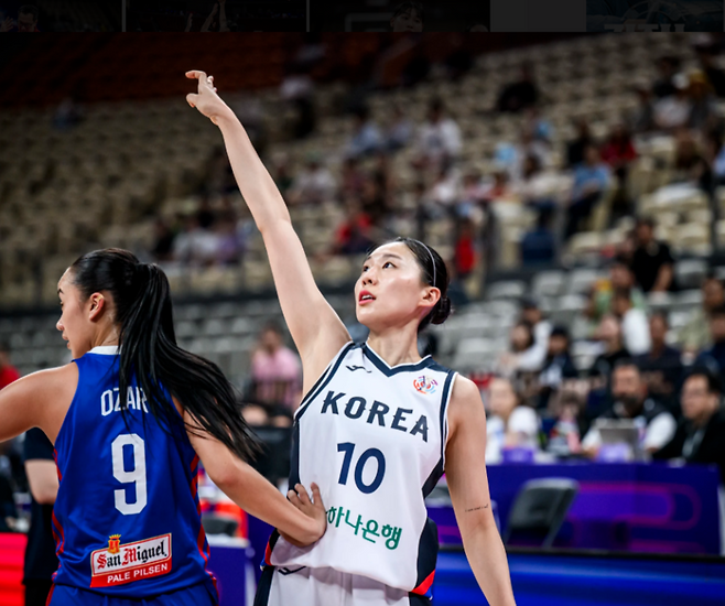 대한민국 여자농구 대표팀(FIBA 랭킹 14위)은 18일 중국 선전 스포츠센터에서 열린 2025 FIBA(국제농구연맹) 여자농구 아시아컵 4강 진출 결정전 필리핀(FIBA 랭킹 44위)과 경기서 104-71로 완승, 4강 진출에 성공했다.