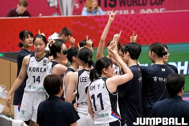 U19 대한민국 여자농구 대표팀이 18일 체코 브르노에서 열린 2025 FIBA U19 여자농구 월드컵 9-16위 순위 결정전 브라질과 경기에서 87-80으로 이겼다. 예선과 16강에서 모두 패한 대표팀은 순위 결정전 첫 경기에서 승리하며 자존심을 지켰다.