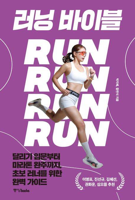러닝 바이블(박지혜·함연식 지음, 중앙북스)=달리기는 단순해 보이지만 올바른 자세와 원리를 모르면 부상 위험도 크다. 사진과 함께 종아리·발목 사용법과 팔치기 등 자세와 원리, 부상 방지하는 부위별 스트레칭, 평상시와 대회 전후 식단 노하우, 10㎞ 완주를 위한 7주 프로그램, 효과적 훈련법 등 러너를 위한 실전형 가이드를 고루 담았다.