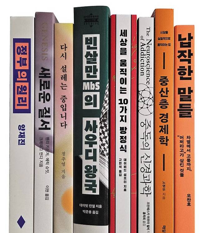 ●빈살만의 사우디 왕국(데이빗 런델 지음)=아랍의 봄에도 흔들리지 않는 세계 유일 절대왕정 사우디아라비아를 분석한다. 왕실이 기득권 집단의 조정자 역할을 맡은 게 권력 유지의 비결. 저자는 미국 외교관 인생 30년 중 절반을 사우디에서 일했다. 인문공간, 3만5000원.