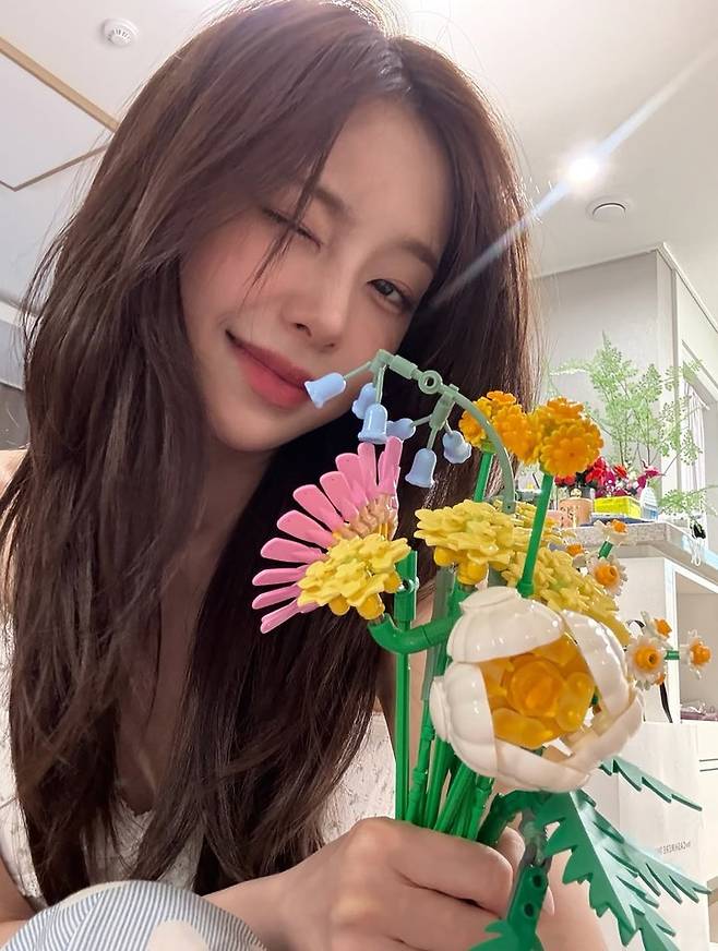 마지막 컷에서 츄는 블록으로 만든 화려한 꽃다발을 들고 윙크를 보내며 청순한 매력을 발산하고 있다. 핑크와 노란색 블록 장난감 꽃들을 든 그는 사랑스러운 분위기를 자아내며, 미소와 윙크로 보는 이에게도 밝고 즐거운 분위기를 선사한다.