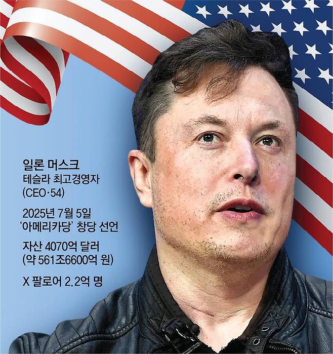 트럼프 대통령의 최측근으로 통했고, ‘1호 친구(First Buddy)’로도 불렸지만 최근 대통령의 감세 정책 등을 두고 갈등을 겪다 결별한 머스크 CEO(54)가 ‘아메리카당(America Party)’을 창당한 뒤 내년 11월 중간선거에 도전하겠다고 5일(현지 시간) 선언했다.