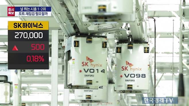 김 연구위원은 또 "코스피 특성이 주도주를 계속 가져가는 것보다 빠른 순환매를 통해 떨어졌던 종목을 사는 전략들이 유지되는 것"이라며 "이런 과정에서 골드만삭스 보고서가 나오니까 SK하이닉스에 대해 더 안 좋게 봤던 부분이 있다"고 진단했다.