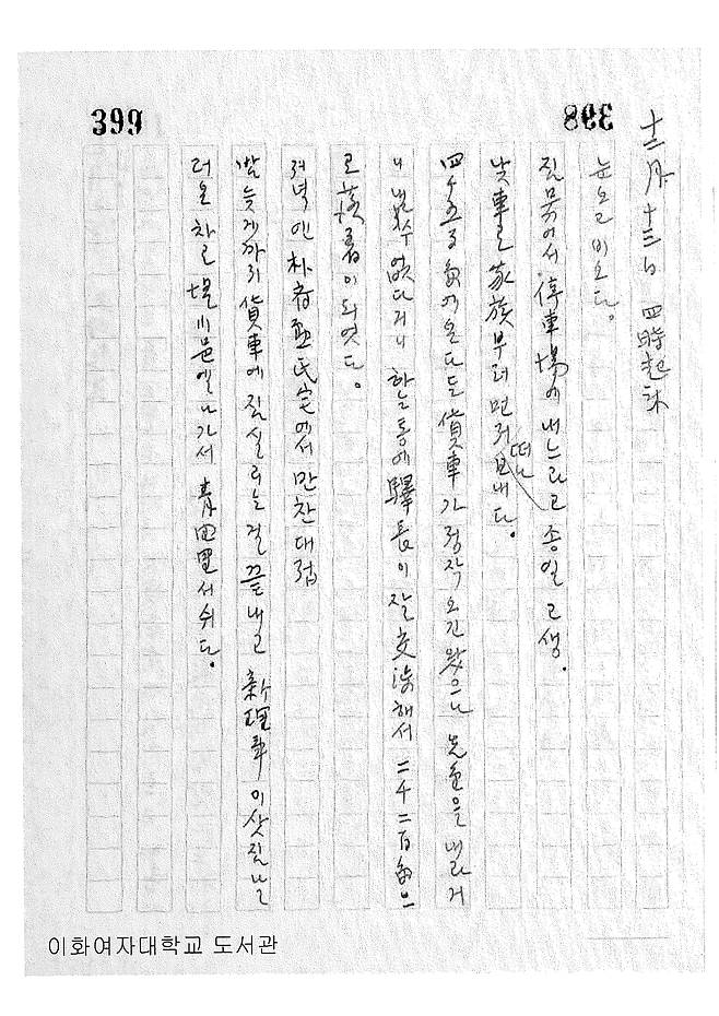 1945년 12월 13일 〔4시 기상. 눈 오고 비 오다〕
