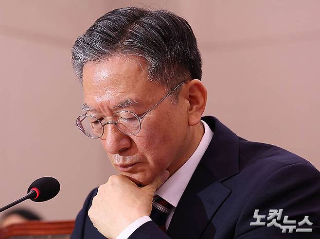 정성호 법무부 장관 후보자가 16일 국회 법제사법위원회에서 열린 인사청문회에 출석해 의원 질의를 듣고 있다. 정 후보자는 인사청문회 모두발언에서 "검찰의 수사·기소권 분리 문제를 매듭지어야 할 때"라며 이재명 정부의 핵심 공약이자 국정 과제인 검찰 개혁에 대한 의지를 강조했다. 류영주 기자