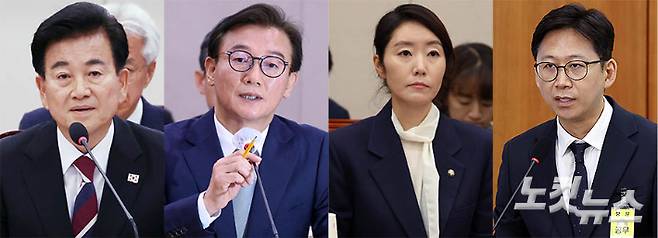 이재명 정부 초대 장관 후보자들에 대한 인사청문회 슈퍼위크가 시작된 18일 국회에 출석한 정동영 통일부 장관 후보자(왼쪽부터), 전재수 해양수산부 장관 후보자, 강선우 여성가족부 장관 후보자, 배경훈 과학기술정보통신부 장관 후보자가 질의에 답하고 있다. 윤창원 기자