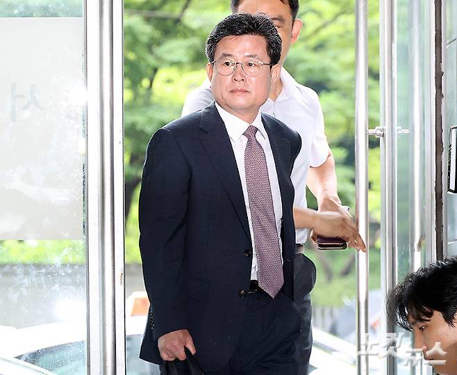 강의구 전 대통령실 부속실장이 16일 오후 서울 서초구 순직해병특검 사무실에 출석하고 있다. 강 전 실장은 이른바 'VIP 격노설'이 처음 제기된 2023년 7월 31일 대통령 주재 외교안보 수석비서관회의 당일 임기훈전 국방비서관과 당일 여러 차례 통화했다는 사실이 알려져 특검팀에 소환됐다. 황진환 기자