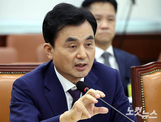 권오을 국가보훈부 장관 후보자가 15일 국회 정무위원회에서 열린 인사청문회에 출석해 질의에 답변하고 있다. 국민의힘 이양수 의원은 대표적 '보은 인사'로 언론 등에서 얘기가 나온다"며 "시쳇말로 꿀 발린 데만 찾아 꿀 빠는 인생이란 비아냥도 나오는데 어떻게 생각하나"라고 말했다. 윤창원 기자