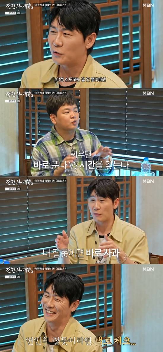이어 곽튜브가 영탁에게 "싸우면 바로 푸는 스타일이냐, 시간을 갖는 스타일이냐"라며 연애 스타일을 물었다. 영탁은 "제가 잘못하면 인정하고 바로 '미안하다'라고 한다. 미안한 게 없으면 끝까지 팩트 체크를 (한다)"라고 답했다.