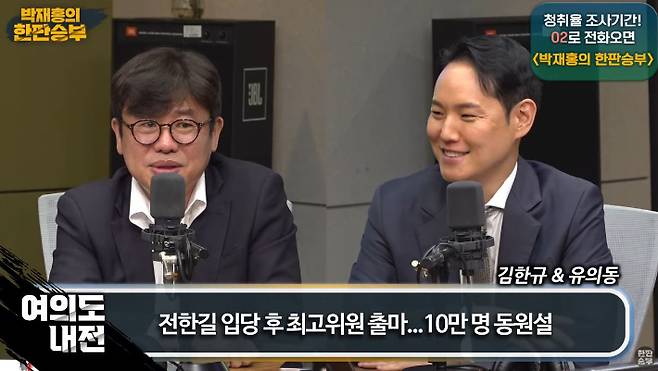 ◇ 박재홍> 박재홍의 한판승부 여의도내전 시작하겠습니다. 먼저 더불어민주당의 김한규 의원님 그리고 국민의힘 유의동 전 의원님 함께하십니다. 어서 오세요.