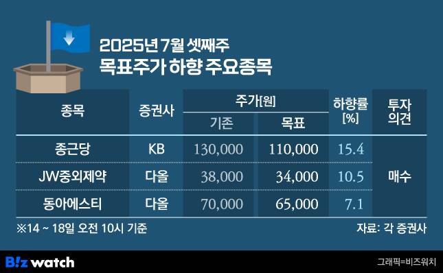 종근당·JW중외제약·동아에스티, 목표가 하향
