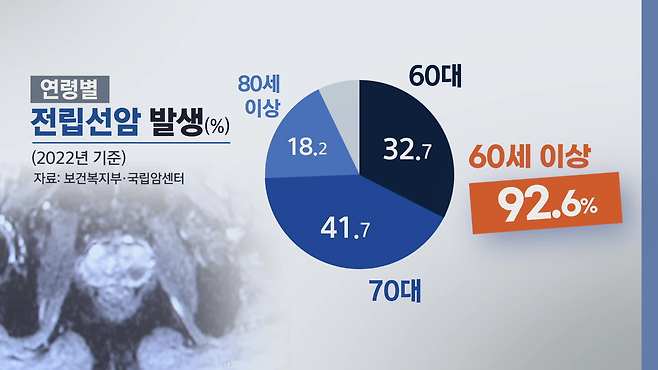 전립선암이 유독 급증하는 이유는 뭘까. 가족력을 제외하면 전립선암의 가장 큰 요인으로는 '노화'가 첫 손에 꼽힙니다. 연령대별 발생 비율을 보면 70대가 41.7%로 가장 많고 60대가 32.7%를 차지하는 등 60세 이상이 전체의 92.6%에 달합니다. 따라서 노인 인구가 늘어나면서 전립선암이 증가하는 것은 자연스러운 일로도 볼 수 있습니다.