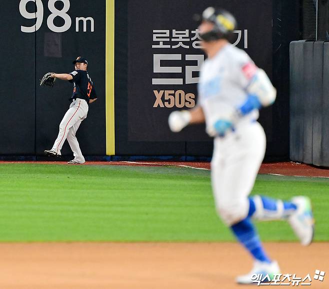 하지만 우익수 이원석이 펜스 앞까지 내달려 멋진 슬라이딩 캐치로 이 타구를 낚아챘고, 사실상 안타를 뺏긴 황재균은 쓸쓸하게 발걸음을 돌려야 했다. 폰세는 이원석의 슈퍼캐치가 나오자 마운드 위에서 큰소리로 포효하며 기뻐했다.