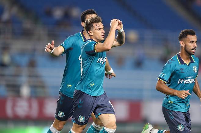 이후 사라이바는 6월부터 점차 출전 시간을 늘려 나가더니 지난 20라운드 서울 이랜드 FC전에서 고대하던 시즌 첫 득점에 성공했다. 사라이바는 후반 17분 역습 상황에서 조지훈의 패스를 받아 정교한 슈팅으로 골문 구석을 갈랐다. 수비수 한 명을 앞에 둔 상황에서도 타이밍을 빼앗은 것이 인상적이었다.