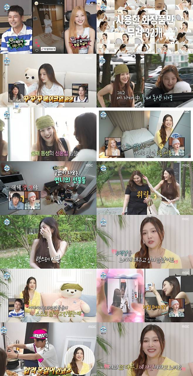 그런가 하면 레드벨벳 조이는 새로운 관리아이템으로 운동을 하며 아침을 열었다. 이어 그는 '꾸꾸꾸' 메이크업과 스타일로 외출에 나섰다. 그가 만난 사람은 바로 여동생. 곧 결혼식을 앞둔 동생 부부의 오붓한 신혼집을 방문한 조이는 침대, 화장대, 옷장, TV 등 자신이 쓰던 가구와 가전을 혼수로 내어주고, 신혼부부를 위한 집들이 선물까지 한 아름 챙겨 'K-장녀'의 동생을 향한 아낌없는 사랑을 보여줬다.