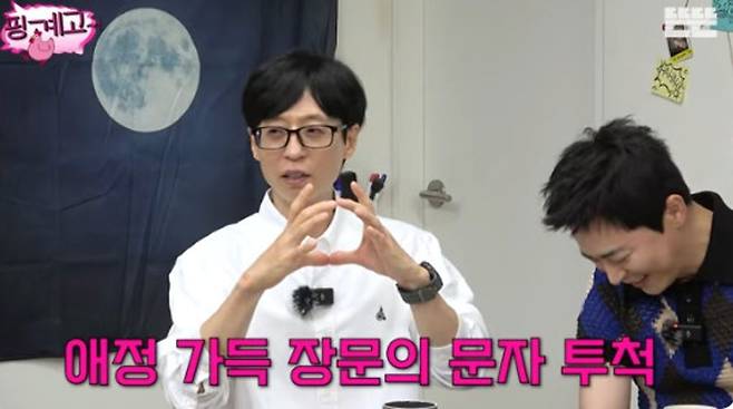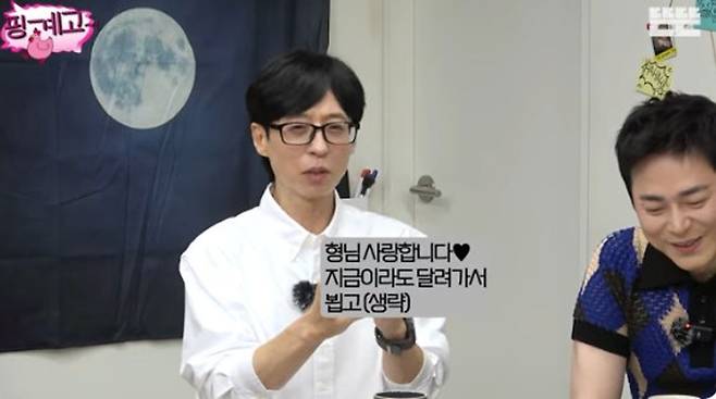 이어 유재석은 "그런데 다음날 문자가 왔다. '형님 어저께 제가 너무 취했었나봐요'라고 보내왔다. 조정석이 기분이 좋았던 것 같다"라고 애정 과다 문자의 이유를 언급하며 웃음을 자아냈다.
