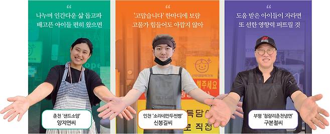 구씨는 “먹고 싶은데도 먹어야 하나 말아야 하나라는 모습을 볼 때 마음이 짠하다”며 “아이들이 눈치 보지 않고 살았으면 좋겠다”고 말했다. 양씨도 “아이들이 마음 편하게 터놓고 이야기할 수 있는 어른이 있다면 좋지 않을까”라며 “그런 연이 더 많이 닿았으면 좋겠다”고 밝혔다.