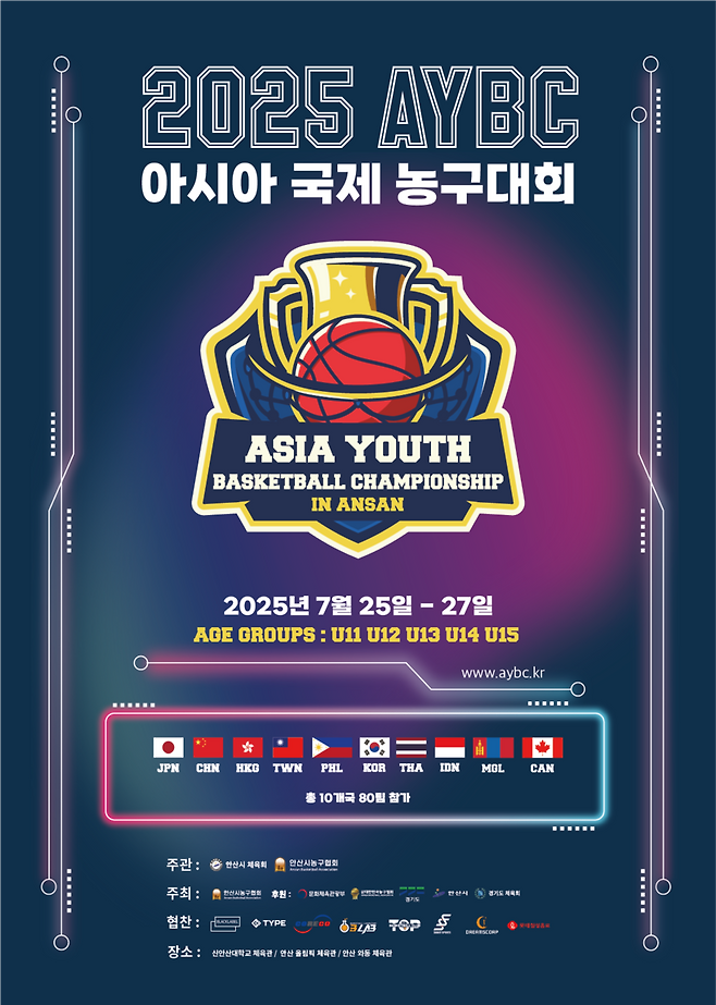 다가오는 25일부터 27일까지 3일간 경기도 안산에 위치한 올림픽체육관, 신안산대학교체육관, 와동체육관, 선부체육관 등 4곳에서 '2025 AYBC 아시아 국제 농구대회'가 열린다.